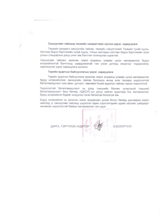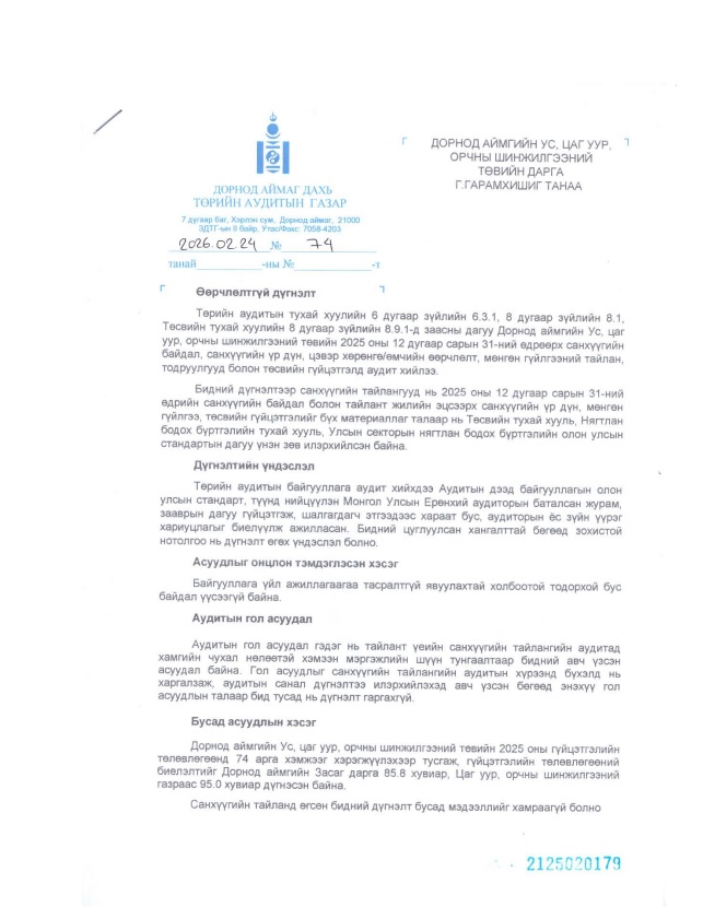 Санхүүгийн 2026 оны аудитын дүгнэлт